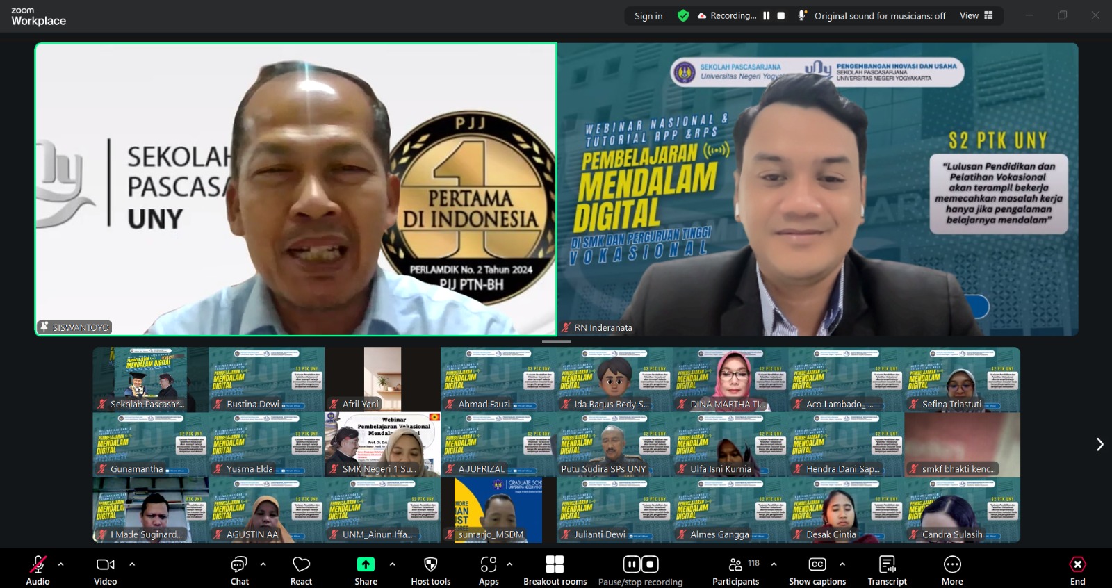 Sekolah Pascasarjana Universitas Negeri Yogyakarta (UNY) sukses menyelenggarakan Webinar Nasional dan Tutorial RPP-RPS Pembelajaran Vokasional Mendalam Digital di SMK dan Perguruan Tinggi Vokasional pada Selasa, 30 September 2025.